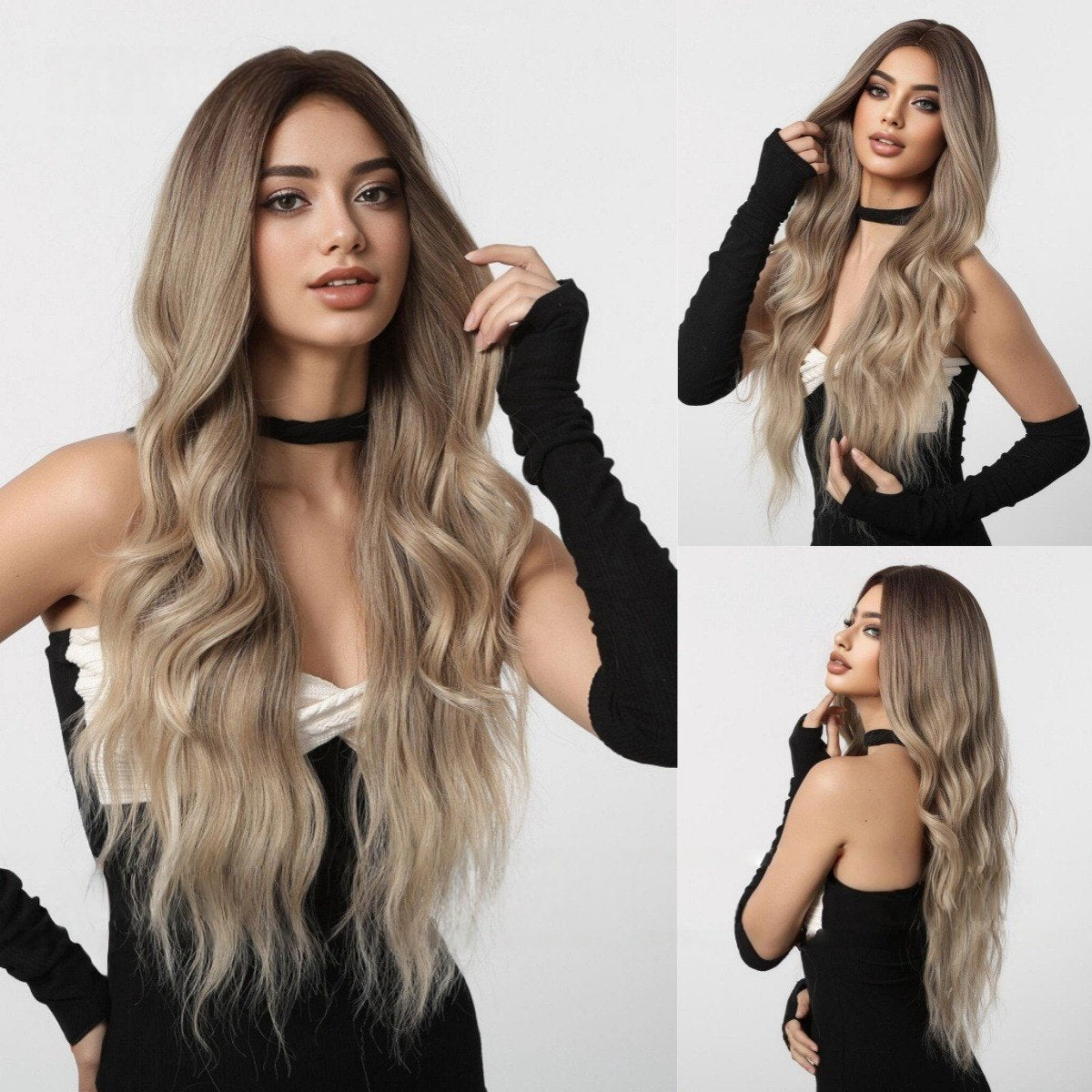 14-Inch Light Blonde to Black Gradient Wig for Women